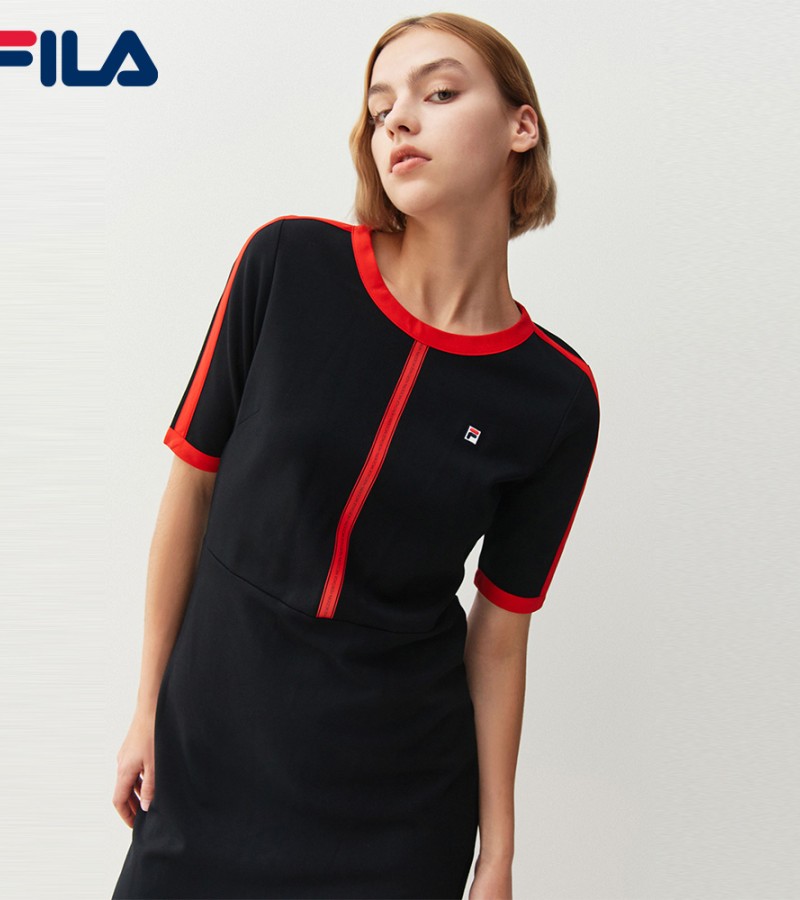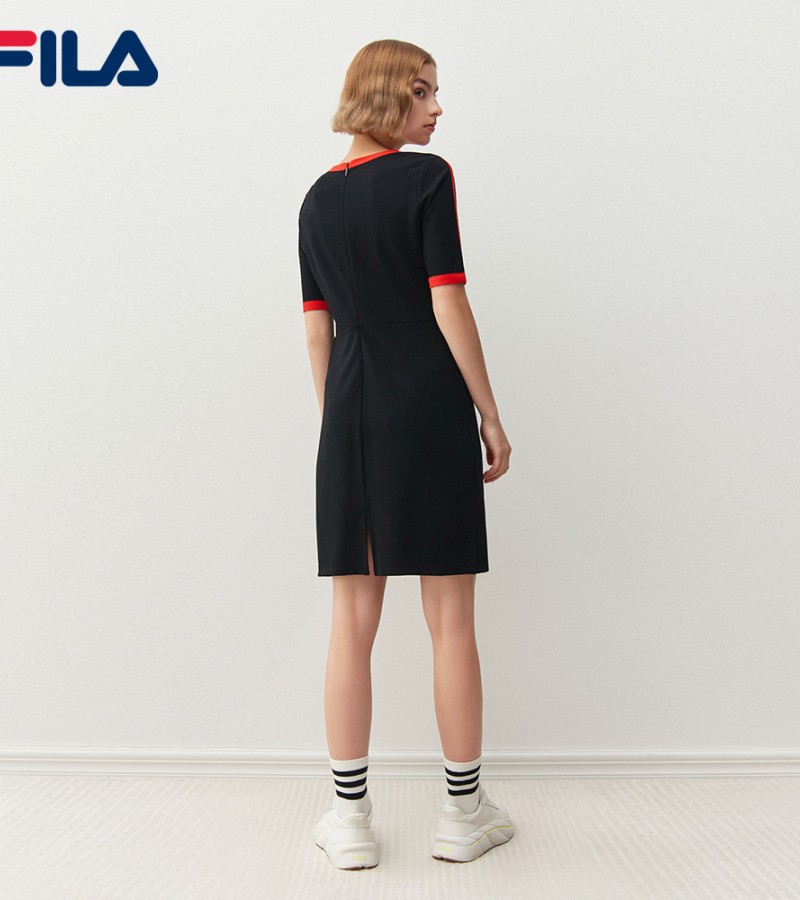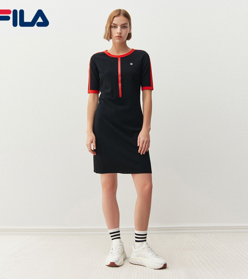 在线独家女式刺绣F-box标志后开叉连衣裙