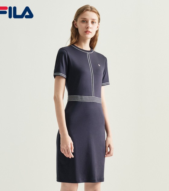 在线独家刺绣F-box标志后缝棉质连衣裙
