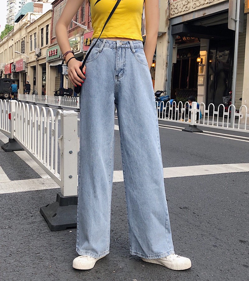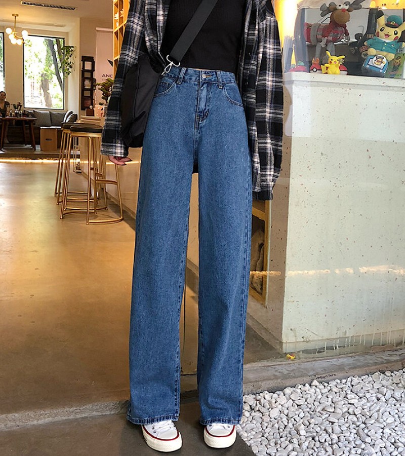 2022年秋季高腰牛仔裤女式大码宽松阔腿长裤,适合丰满女孩,修身垂坠拖把直筒裤