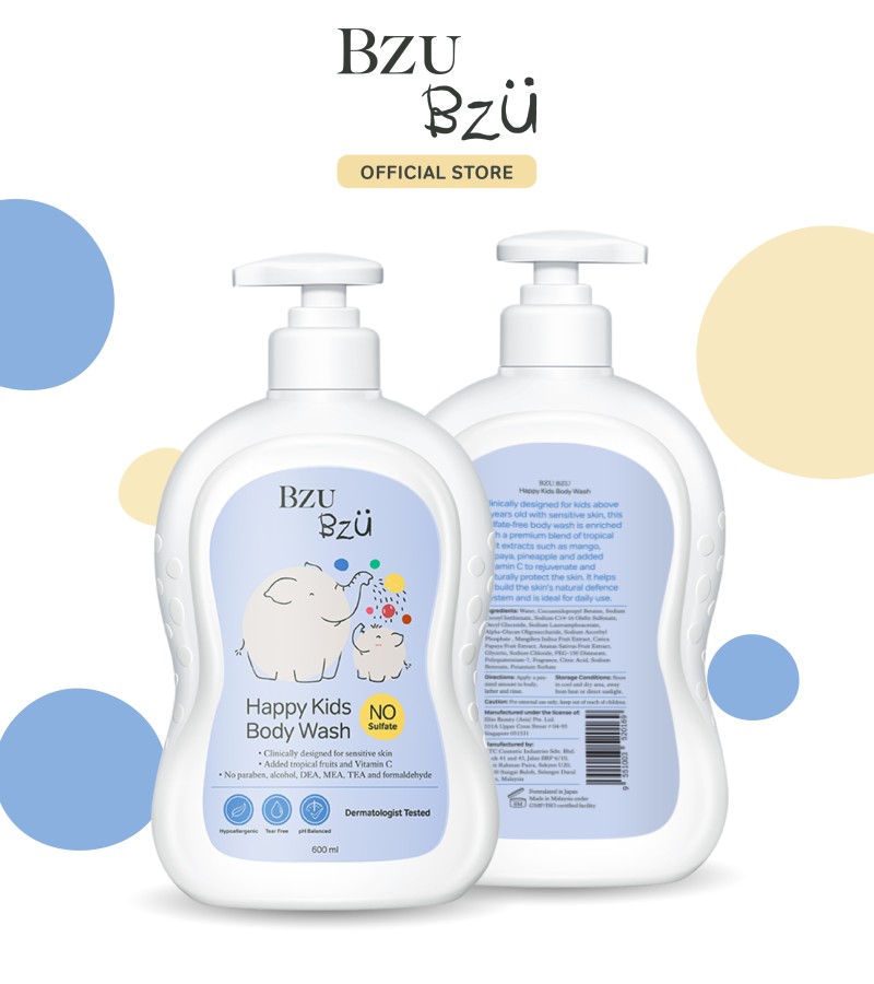BzuBzu快乐儿童沐浴露套装,600ml |专为敏感肌肤设计