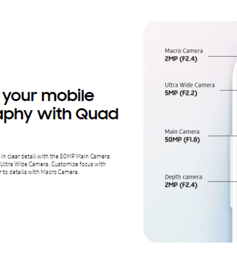 • eMMC 5.1MAIN CAMERAQuad50 MP, f/1.8, (wide), PDAF