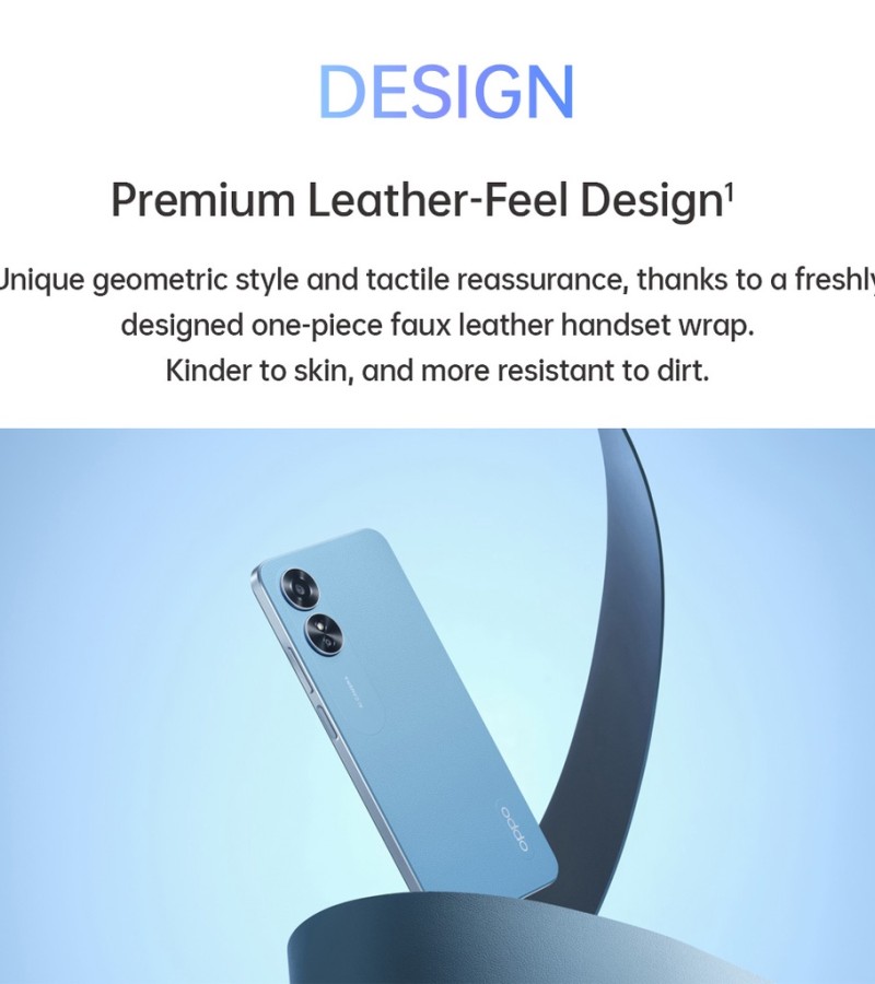 Adopting the ultra-slim body and Premium Leather-Feel design, the new OPPO A17 gives off a one-of-a-kind visual