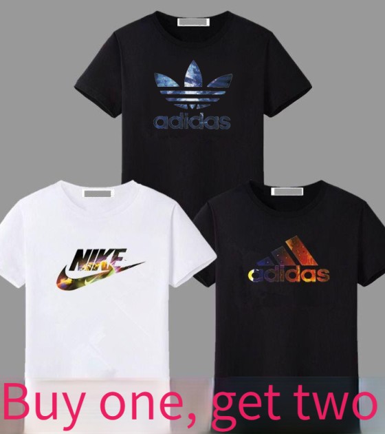 (Buy one, get two free) Super value all-match fashion T shirt all-match round neck Korean version loose large print half sleeve shirt